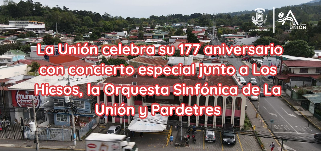 La Municipalidad de La Unión invita a toda la comunidad a ser parte de una celebración histórica y cultural en conmemoración del 177 aniversario del cantón, con un concierto gratuito que reunirá a Los Hicsos, la Orquesta Sinfónica de La …